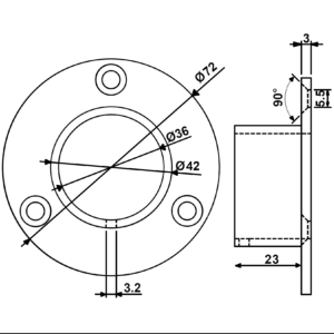 Begin met het losdraaien van de twee inbusboutjes van de flens. Draai deze alleen los zodat u aan de binnenkant niets meer voelt. De inbusboutjes hoeven er niet uit. U heeft nu de huls en het montageplaatje los. Start met het zorgvuldig uitmeten van de boorgaten. U bevestigt de flens met blinde bevestiging met één schroef. Zorg ervoor dat de huis horizontaal hangt. Boor de gaten en plaats de montageplaatjes. Controleer of de buis nu tussen de twee montageplaatjes past. Een beetje speling is niet erg (zelfs makkelijker!) Schuif nu de hulzen over de buis, plaats de buis tussen de montageplaatjes en schuif de hulzen over de montageplaatjes. Draai eerst de inbus aan om de hulzen te verankeren (inbus uit het zicht – vb; onderkant). Daarna verankert u de buis met de tweede inbus.